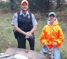 On September 10, 2019, Tom was hunting with Brenda over a food plot and as shooting hours approached, the deer starting coming out of the woods. A short time later, Tom was successful in harvesting a buck deer after Brenda and he determined a safe shot was possible, steadied his aim, and took a shot with the deer being found a short distance away. We all were very excited to say the least and Tom was smiling from ear to ear! After harvesting the deer, Warden Supervisor Dremel and Warden Kernosky worked with Tom and Brenda to field dress the deer and take multiple pictures with the group. It was a great, safe hunt, and one that all of us will remember!